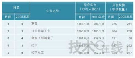 提供专利分析数据及分析软件的日本Patent Result宣布,LED照明相关专利的分析结果显示,夏普在该领域的“专利综合实力”排名中位居首位。第2位为日亚化学工业,第3位为荷兰皇家飞利浦电子。