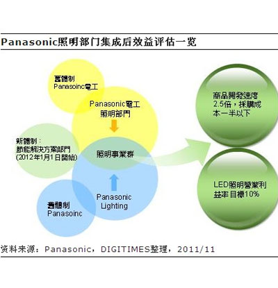 Panasonic是日本照明大厂,2011年上半电球型LED灯销售金额在日本排名第1,市占率约35%,在日本销售的LED灯具种类约2,000种,LED灯泡(管)种类约30种。