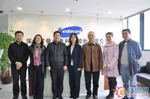 慧聪LED屏网1月30日报道为增强对南山区内LED行业企业的了解,挖掘LED企业对产学研模式的需求,2013年1月,深圳市南山区科技创新局局长练聪、科协常务副主席王鸣、副局长刘石明、副调研员李伟忠一行到访了雷曼光电集团