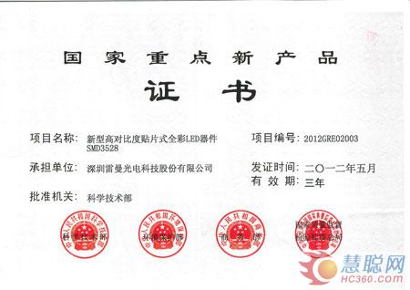 慧聪LED屏网12月10日报道 雷曼光电新型高对比度贴片式全彩LED器件SMD3528(俗称黑美人)继荣获“2011年广东省高新技术产品”的荣誉称号之后,再度获评“国家重点新产品”殊荣。作为LED行业的领军企业,雷曼光电长期致力