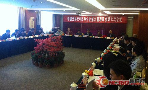 2012年4月19日中国光学光电子行业协会光电器件分会第六届理事会第七次会议在江西省井冈山市召开,工业和信息化部电子信息司相关领导以及中国光学光电子行业协会副秘书长所洪涛、中国半导体照明/LED产业与应用联盟秘书