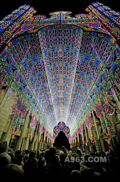 在最近比利时的根特2012光艺术节上,高28米,由55000个LED灯组成的Luminarie De Cagna大教堂,非常的气势恢宏,成为最耀眼的参展项目。当夜幕降临,置身于这个五彩斑斓的光之教堂之下,人们仿佛来到了天堂……
