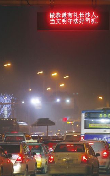 慧聪LED屏网报道 12月27日晚,湘府路中意一路路口,LED电子屏上正显示安全出行的宣传口号。