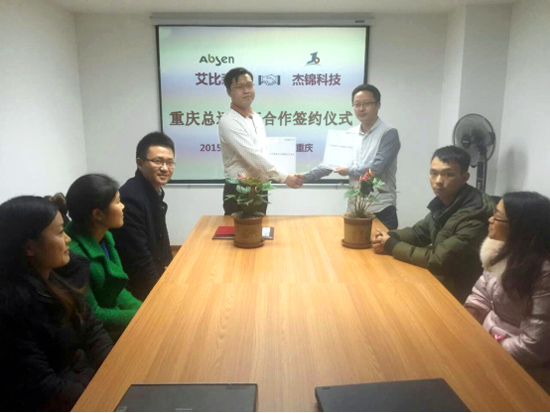 慧聪LED屏网报道 为了进一步开拓重庆市地区的市场,2015年12月29日,艾比森中国区总经理张华斌与重庆杰锦科技有限公司总经理王刚签订了渠道战略合作协议,授予重庆杰锦为艾比森重庆市总运营商。