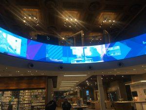 慧聪LED屏网报道 位于旧金山市中心的AT&T旗舰店吸引了消费者和数字世界的关注。一个40英尺长、6英尺宽的弧形数字全景屏幕通过展示创意内容吸引了来到AT&T旗舰店的客户,并邀请他们体验最新的技术并为商店的用户体验