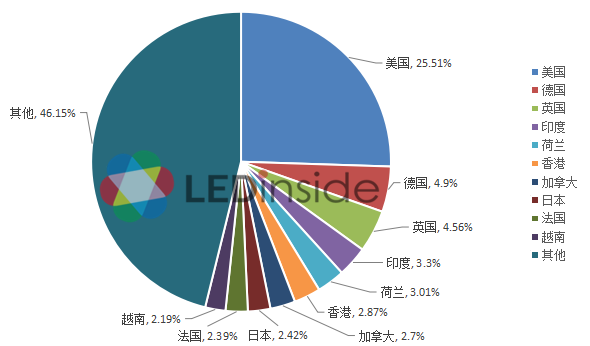 慧聪LED屏网报道 2017年1~9月,全国照明行业完成累计出口额299.95亿美元(折合人民币约1954亿元),同比增长9.50%。出口额排在前五位的国家依次是美国、德国、英国、印度、荷兰等地区。其中:美国完成累计出口额76.