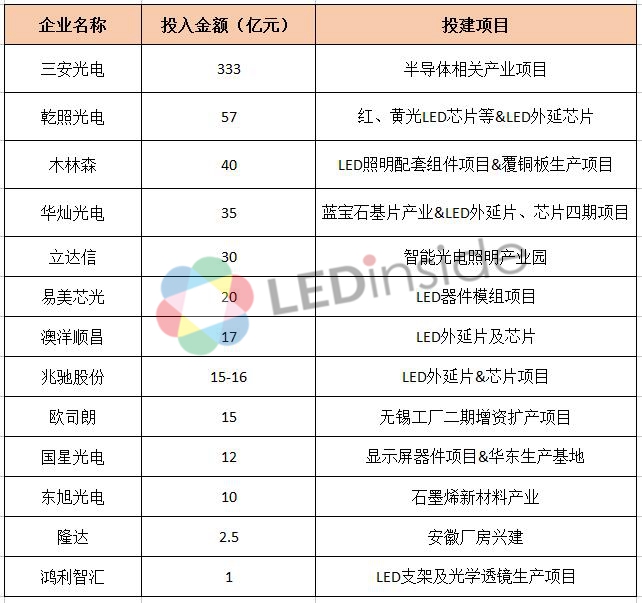 LED行业亿级扩产大项目一览 2018年又将呈现什么样的精彩?