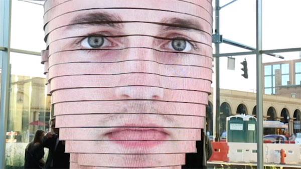 是惊喜还是惊吓?“头像”LED雕塑显示参观者面容