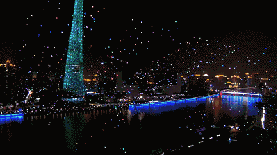 慧聪LED屏网报道 近日,2017《财富》全球论坛在广州举办,让世界目光再度聚焦于这一花城。昨晚,漂浮在海心沙上空的1180架无人机的精彩表演,刷爆了朋友圈。伴随着《祝酒歌》的音乐声,1180架无人机编队升起,亮灯形