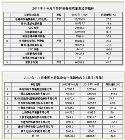 慧聪LED屏网报道 根据中国电子专用设备工业协会对国内35家主要半导体设备制造商的统计,2017年1-6月,半导体设备完成销售收入36.77亿元,同比增长27.6%,相当于去年全年半导体设备销售收入的64.1%。