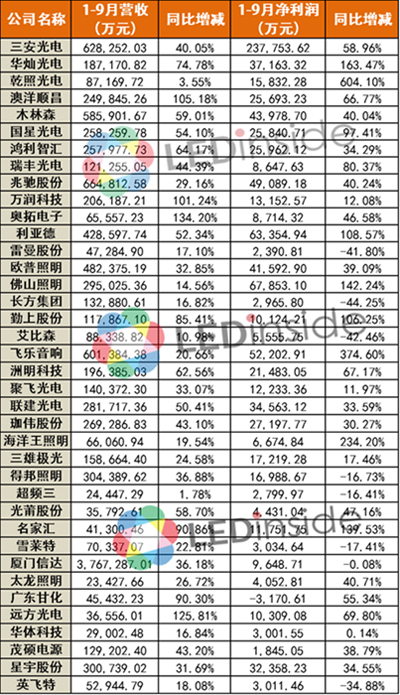 三季报披露接近尾声!38家LED企业三季业绩一览