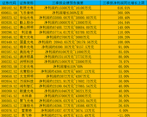 LED行业2017三季度报一片红!八家公司增长愈100%!