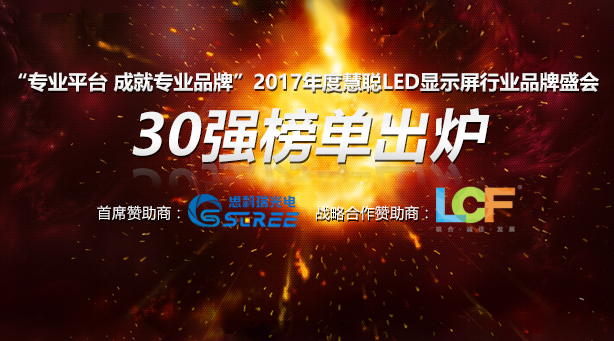 “专业平台成就专业品牌”2017年度慧聪LED显示屏行业品牌盛会30强火热出炉!