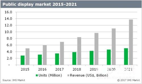慧聪LED屏网报道 预计在未来四年内,数字标牌显示市场的年复合增长率将达到18.2%,其中最大的增长将出现在65英寸或更大的显示屏上。