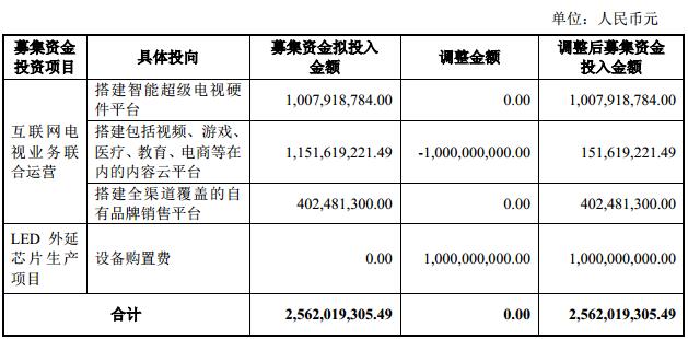 慧聪LED屏网报道 9月5日晚间,兆驰股份发布《关于变更募集资金用途的公告》,公告显示,为提高募集资金的使用效率和效益,拟减少“搭建包括视频、游戏、医疗、教育、电商等在内的内容云平台”募集资金10亿元,并投入
