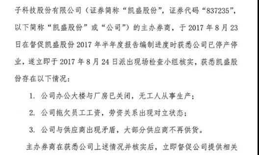 慧聪LED屏网报道 今日,据知情人士爆料称,广州凯盛电子科技股份有限公司(证券简称:凯盛股份证券代码:837235)于日前已陷入停产停业状态。