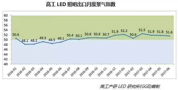 慧聪LED屏网报道 一、内容概述 6月中国LED照明出口景气指数为51.6,处于景气区间,较上月下降0.2个点,这表明中国LED照明出口的整体形势良好,但相比上月有轻微的趋弱。这主要受到中国LED照明出口规模、汇率波动、封