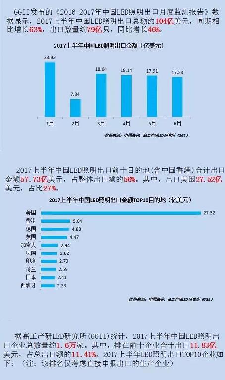 2017上半年中国LED照明企业出口十强榜单出炉!