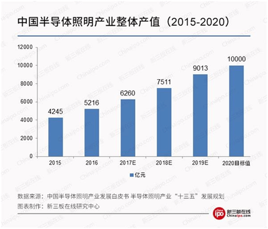 慧聪LED屏网报道 1、根据《半导体照明产业“十三五”发展规划》的目标,到2020年,我国半导体照明产业整体产值达到1万亿元,LED功能性照明产值5,400亿元。