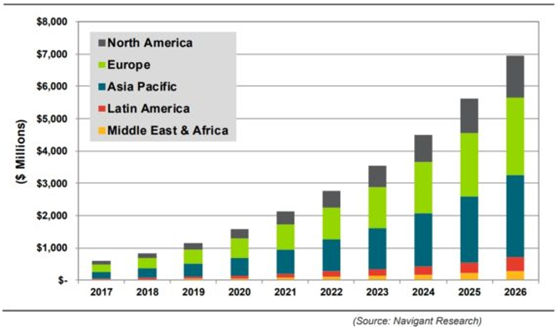 慧聪LED屏网报道 根据NavigantResearch的一份新报告,2017年全球智能路灯市场价值将达到6.1亿美元,并在2026年增长到69亿美元。市场份额预计将从2017年的2%增长到2026年的20%左右。