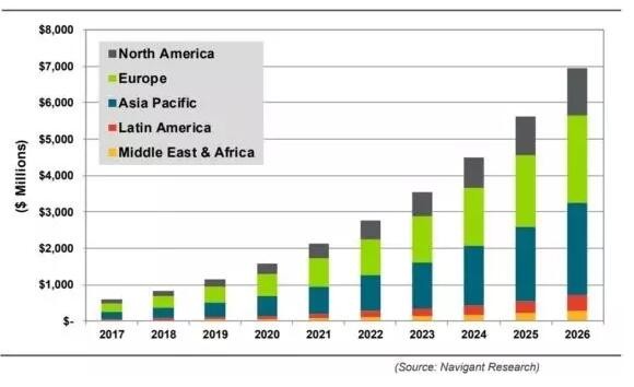 慧聪LED屏网报道 Navigant Research的一份新报告,2017年全球智能路灯市场价值将达到6.1亿美元,并在2026年增长到69亿美元。市场份额预计将从2017年的2%增长到2026年的20%左右。
