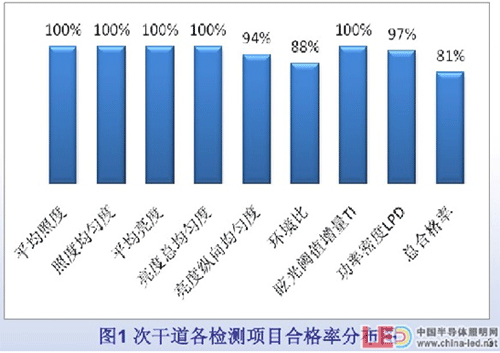 2012年,中国建筑科学研究院跟踪检测了44个半导体照明工程,其中包括国家发改委半导体照明产品应用示范工程,海峡两岸半导体道路照明工程以及日常委托道路照明。检测了主干道32个,总体合格率仅为25%,次干道12个,总