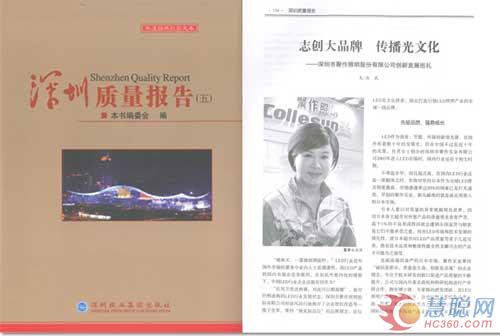 慧聪LED屏网3月18日报道 2013年3月,深圳LED行业质量标杆企业聚作照明成功入编2012年度《深圳质量报告》,这是继2011年版后公司第二次被甄选入《深圳质量报告》,报告对聚作照明进行了深入详细的报道。《深圳质量报告