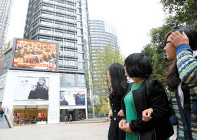 日前,党的十八大在京开幕,为方便市民观看,昆明主城21块LED户外广告显示屏对开幕式的盛况进行了直播。