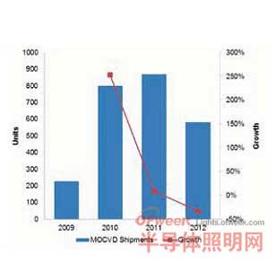 IMSresearch分析师每季度都会联系全球LED生产商,询问其后面4到6个季度MOVCD机台购买计划(例如设备型号和外延尺寸),以调查GaN基板LED产能扩张计划。然后我们会根据设备信息推算出外延片产能,芯片产能,考量良率后