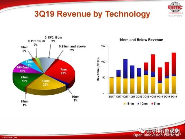 台积电每个季度都会发布营收数据,其中有两个数据分别是按工艺细分(by Technology)和按平台细分(by Platform)。