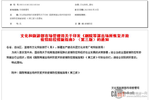 8月12日,文化和旅游部市场管理司印发《剧院等演出场所恢复开放疫情防控措施指南》(第三版)的通知。相比此前文旅部发布的限流30%文件相比,此次下发的文件对剧院演出场馆的限流明显有所放宽。