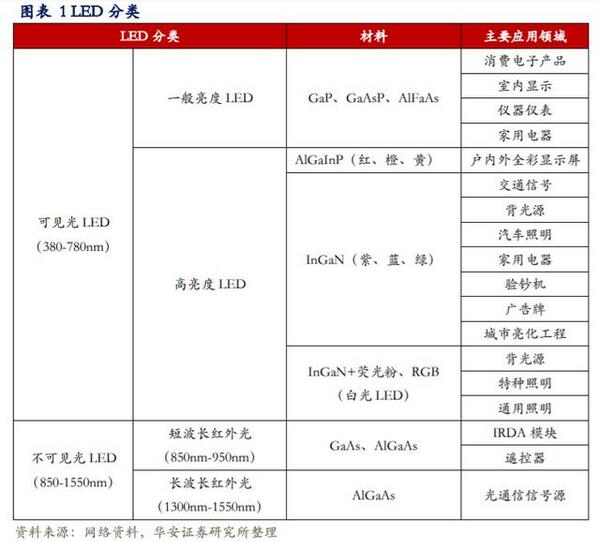 1、 LED 行业筑底,产业链集中度提升 发光二极管(Light emitting diode,LED),是一种半导体发光组件。它的显示原理是利用半导体二极管的电致发光效应,使像素单元实现主动发光。不同材料制成的LED 会发出不同波长的