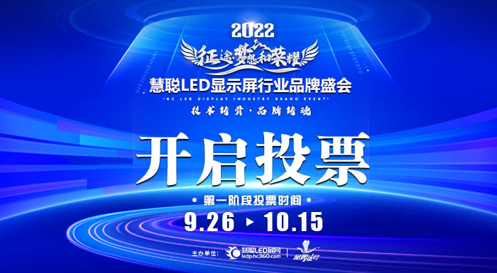 9月26日上午9时-10月15日下午17点,2022年度慧聪LED显示屏行业品牌盛会评选活动第一阶段海选30强的投票正式开启!