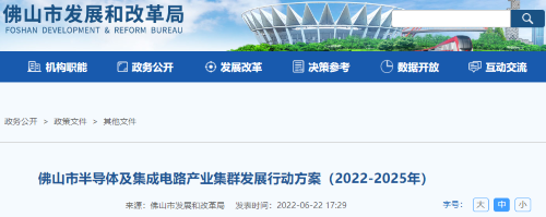 6月22日,佛山市发展和改革局发布《佛山市半导体及集成电路产业集群发展行动方案(2022-2025年)》(下称《行动方案》)。