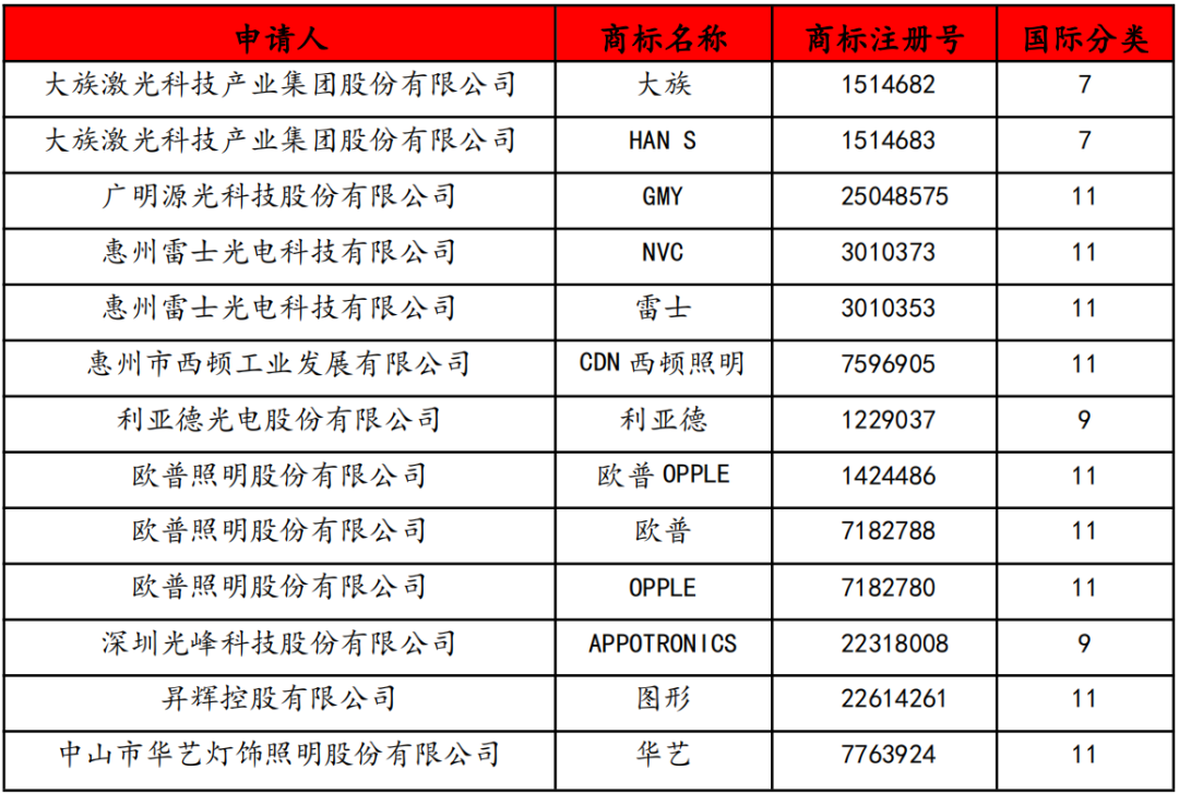 13个照明企业商标纳入广东省重点商标保护名录