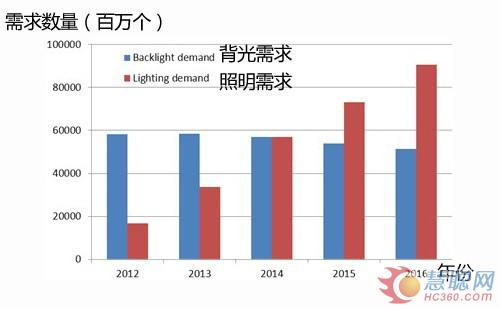 慧聪LED屏网4月22日报道据悉,得益于厂商产能扩张、LED价格下降、环保考虑以及政府补贴,LED照明的需求正快速提升。2013年LED照明需求将提高到3千3百万个,较2012年1千6百万个成长一倍,并将于2016年成长三倍。