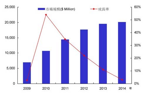 2010年在全球经济复苏及照明与中大尺寸背光模块等新应用市场带动下,全球发光二极管(led)市场规模约达107亿美元,较2009年成长54%。展望2011年,LED在终端产品的需求带动下,仍会维持成长态势,节能减碳议题备受全球